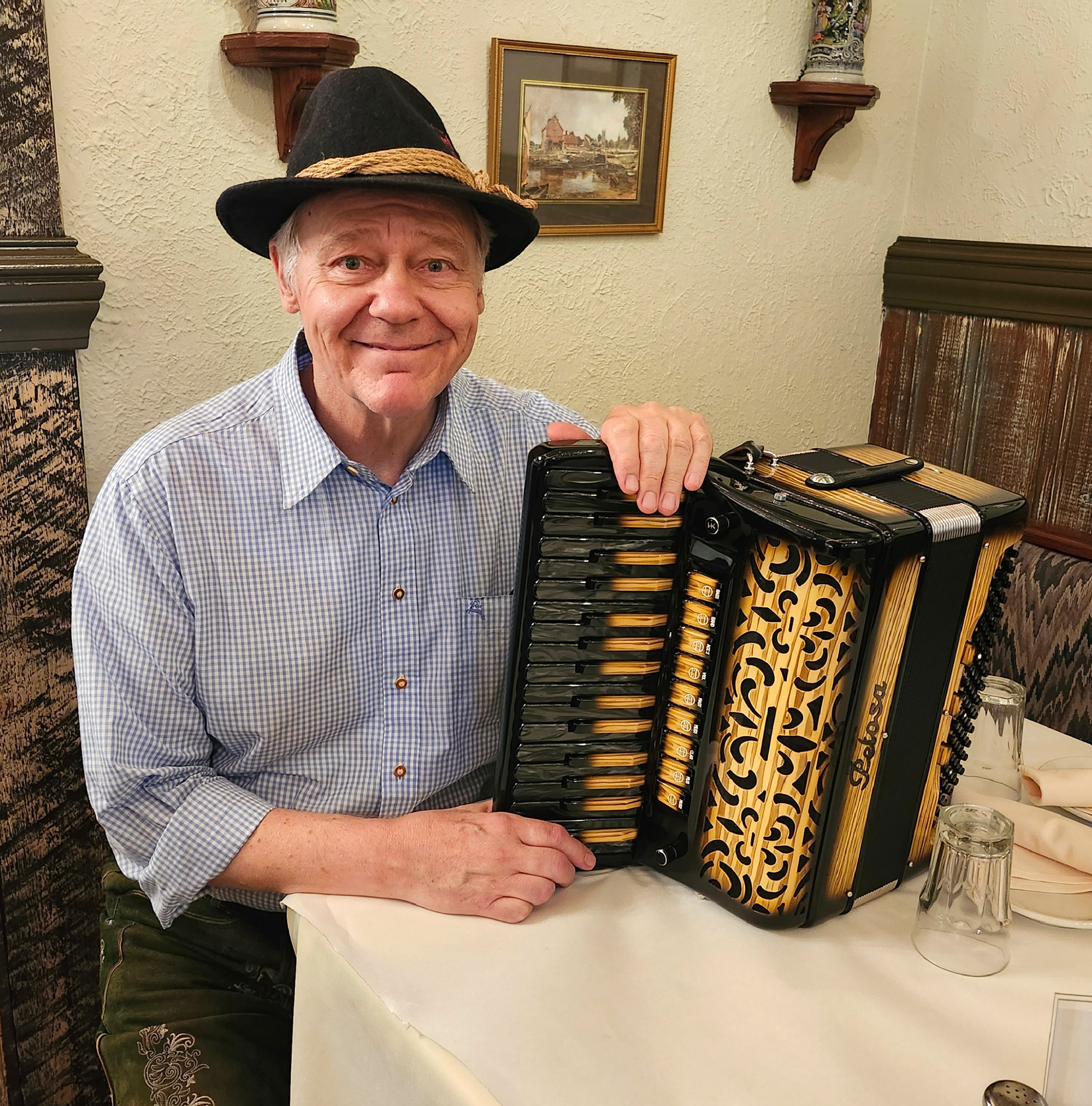 Gabe can perform as a solo one man band performing German, Austrian, and Swiss folk music for a variety of venues with: